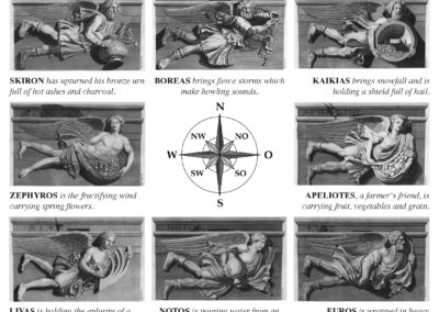 In ancient Greek religion and mythology the Anemoi were eight wind deities, subject to the god Aeolus, the ruler of all winds, and each assigned a direction from which their winds came and each associated with different seasons and weather conditions, influencing among other things the changing of the climate, the spreading of diseases and the outcome of wars – all subjects that should be addressed by world leaders. In his book “Heaven‘s Breath: A Natural History of the Wind“ the author Lyall Watson describes the wind as a “combination of a force that cannot be apprehended, but nevertheless has an undeniable existence“ – his quote could just as easily apply to music. In the symphonic work Anemoi each of the eight ancient Greek wind gods Boreas, Kaikias, Apeliotes, Eurus, Notus, Livas, Zephyrus and Skiron (depicted in this succession on the Tower of the Winds, an octagonal marble clocktower in the Roman Agora in Athens built around 50 BC and still standing) is characterised by various instrumental formations within the orchestra, including allusions to ancient Greek musical instruments such as the lyre and aulos, the latter’s harsh sound being reminiscent of either the howling of wolves or the siren warning of an impending missile attack.